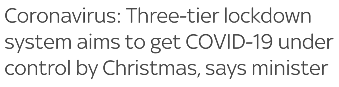 (新闻源:https://news.sky.com/story/coronavirus-three-tier-lockdown-system-aims-to-get-covid-19-under-control-by-christmas-says-minister-12102305)
