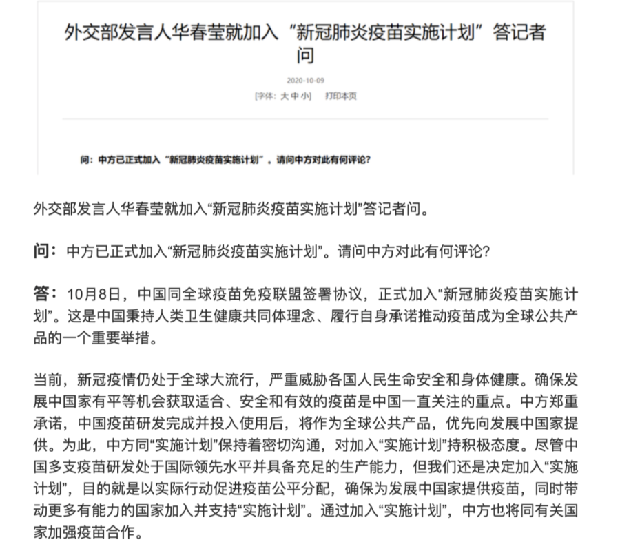 同时,中国在近日已经正式加入新冠疫苗实施计划。