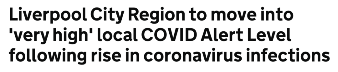 (新闻源:https://www.gov.uk/government/news/liverpool-city-region-to-move-into-very-high-local-covid-alert-level-following-rise-in-coronavirus-infections)