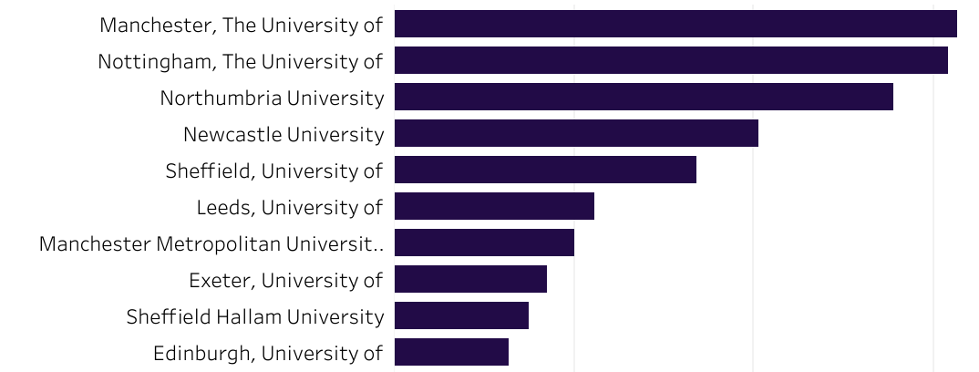 | 赫瑞-瓦特大学大学 | 少于10例 | 10.8 |