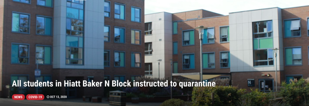 布里斯托大学的Hiatt Baker N Block 公寓所有同学被要求隔离14天