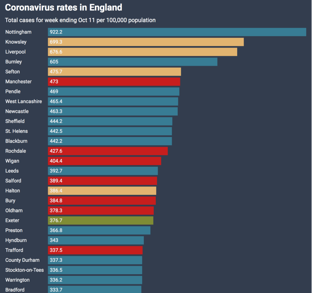 (新闻源:https://www.theguardian.com/politics/live/2020/oct/16/uk-coronavirus-live-boris-johnson-local-restrictions-lockdown-tier-2-covid-brexit-latest-updates)