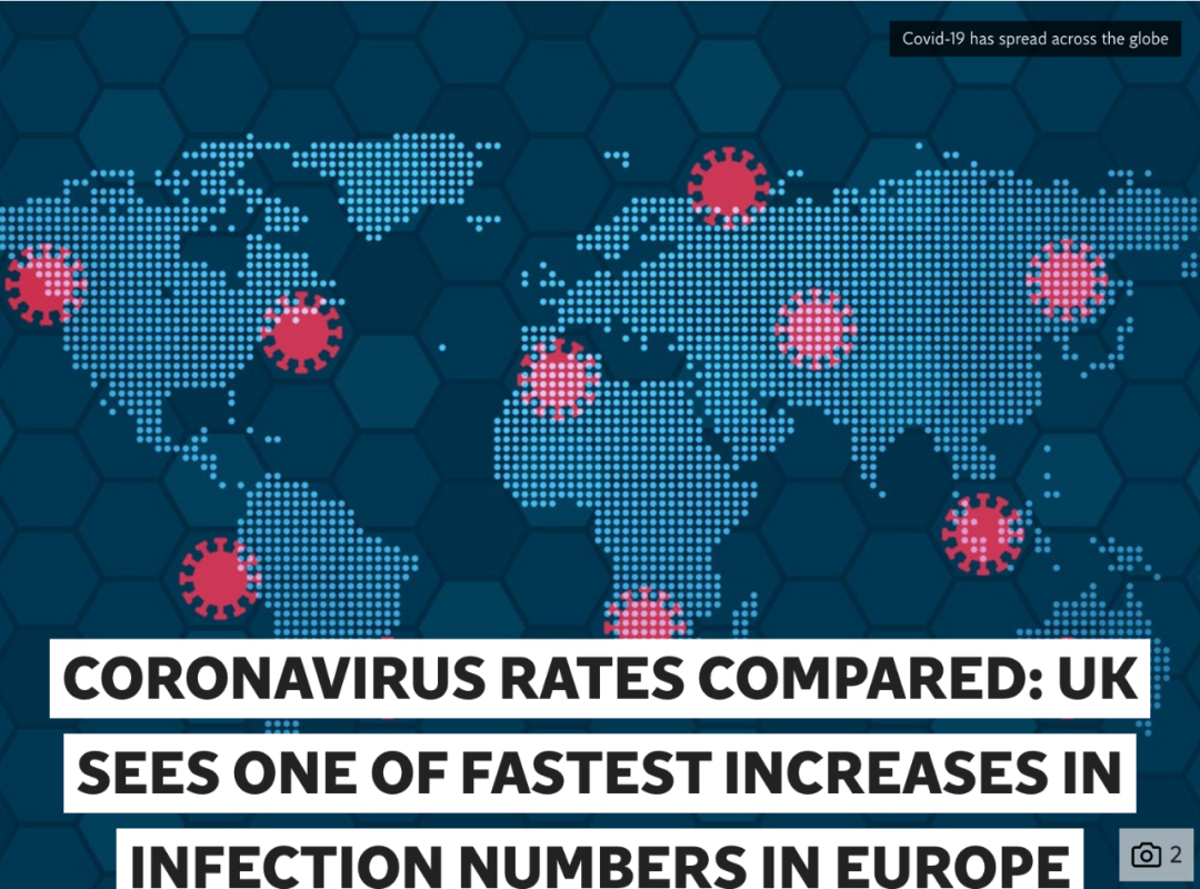 英国是欧洲感染人数增长最快的国家之一,目前每十万人感染率排在整个欧洲第二位