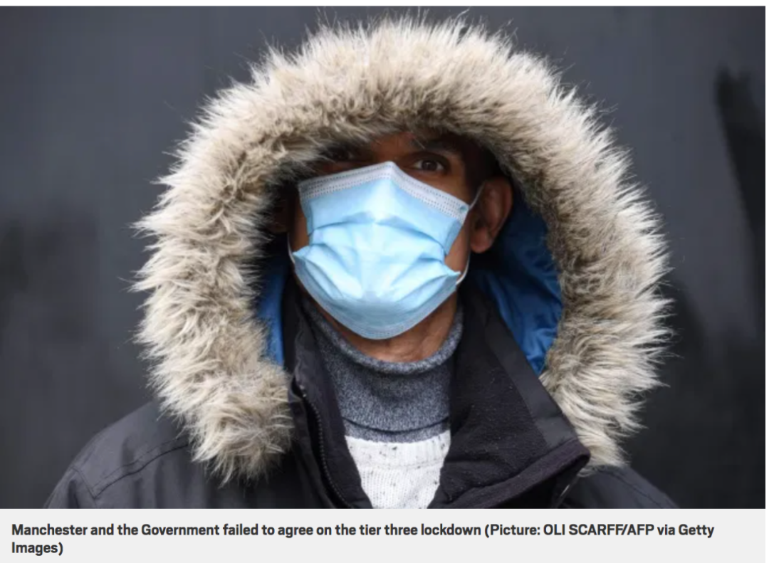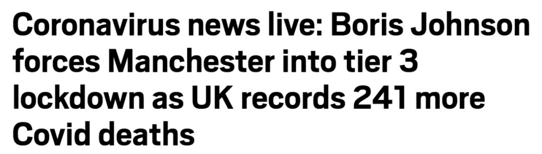 (新闻源:https://metro.co.uk/2020/10/20/coronavirus-news-live-manchester-tier-3-lockdown-uk-80-covid-deaths-13449102/)