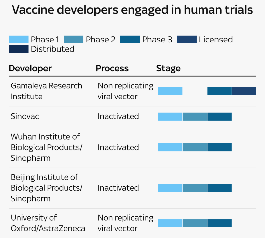 (新闻源:https://news.sky.com/story/coronavirus-tracking-every-global-effort-to-find-a-covid-19-vaccine-12030675)