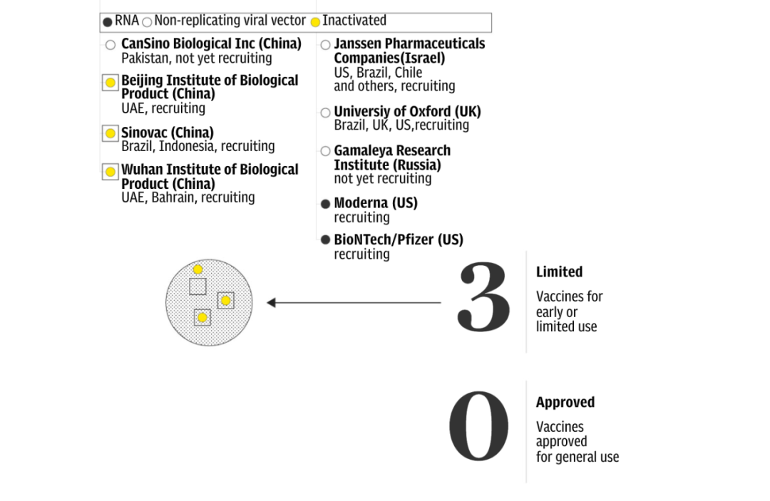 初步结果显示,一种基于灭活冠状病毒的中国候选疫苗BBIBP-CorV是安全的,并能引起抗体反应。