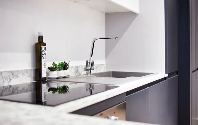 现代化装修的厨房,配备可与小伙伴愉快聚餐的吧台