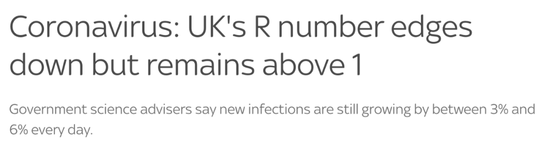 (新闻源:https://news.sky.com/story/coronavirus-uks-r-number-edges-slightly-down-but-remains-above-1-12112014)