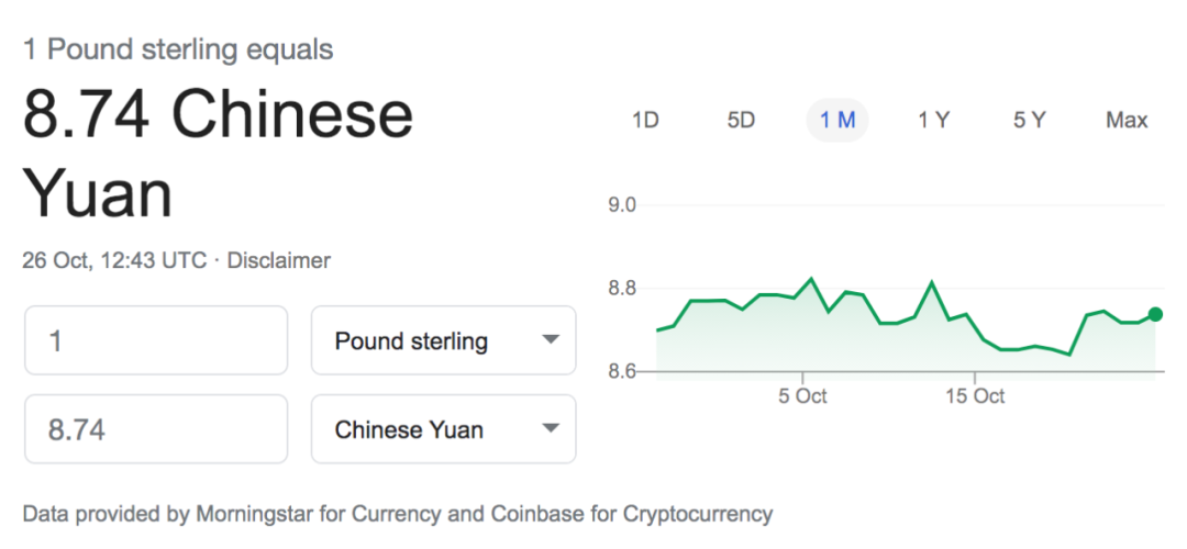 今日英镑兑人民币汇率:1:8.74