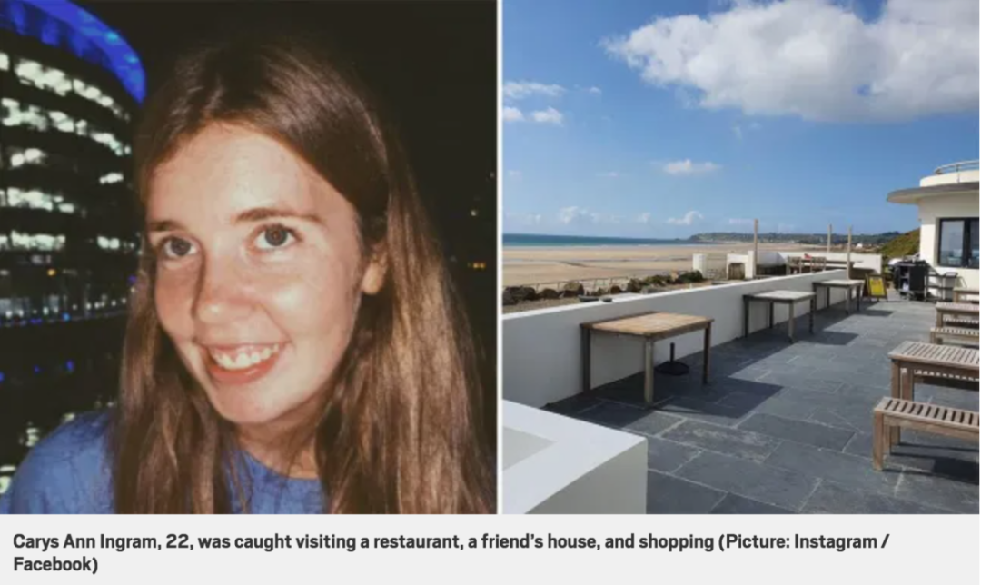 一名学生因违反检疫规定购物、拜访朋友和外出就餐,被罚款近7000英镑。22岁的卡里丝·安·英格拉姆从索尔福德飞到泽西岛后,Test abd Trace小组随机抽查了她的家,发现她应该按要求隔离,却没有。工作人员随即打电话联系她,并且被逮捕了。在法庭上,警方提供了她去了St Ouen 's Bay的El Tico餐厅吃饭的照片,并且这些照片来源于她的Ins。