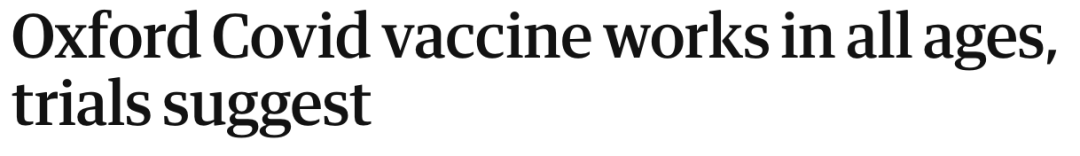 (新闻源:https://www.theguardian.com/world/2020/oct/27/covid-vaccine-uk-oxford-university-astrazeneca-works-in-all-ages-trials-suggest)