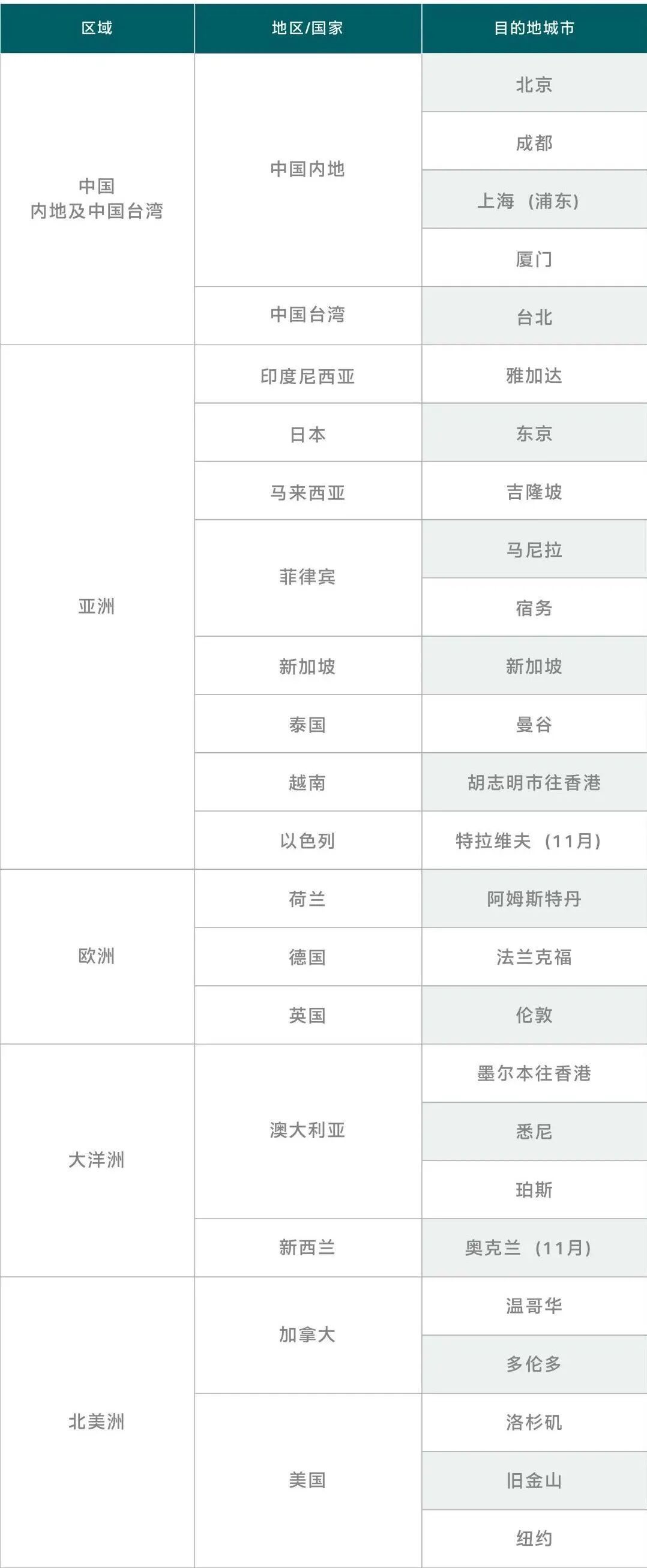* 不同航司情况不一,以下计划包含10~11月航班计划&冬季计划&冬季+春季计划等多种。