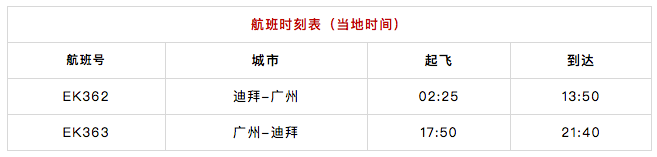 目前阿联酋航空已经恢复迪拜-广州的客运服务,每周六执飞。