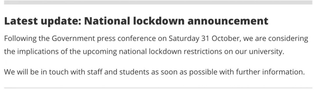 谢菲尔德大学正在考虑新限制对于校园的影响,如有任何新消息,学校将直接联系学生和教职员工。
