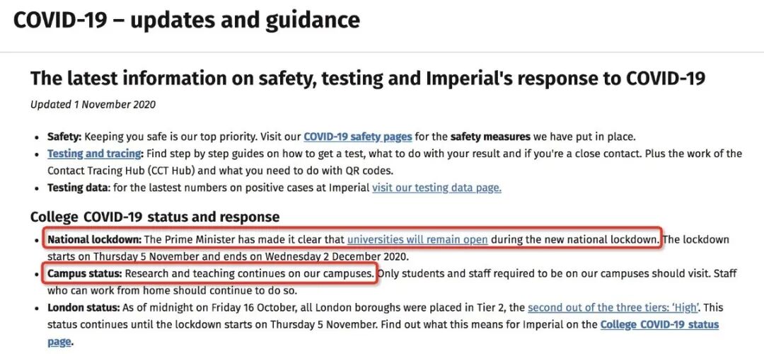帝国理工学院表示,英政府已经发布明确指示:建议英国大学保持开放。