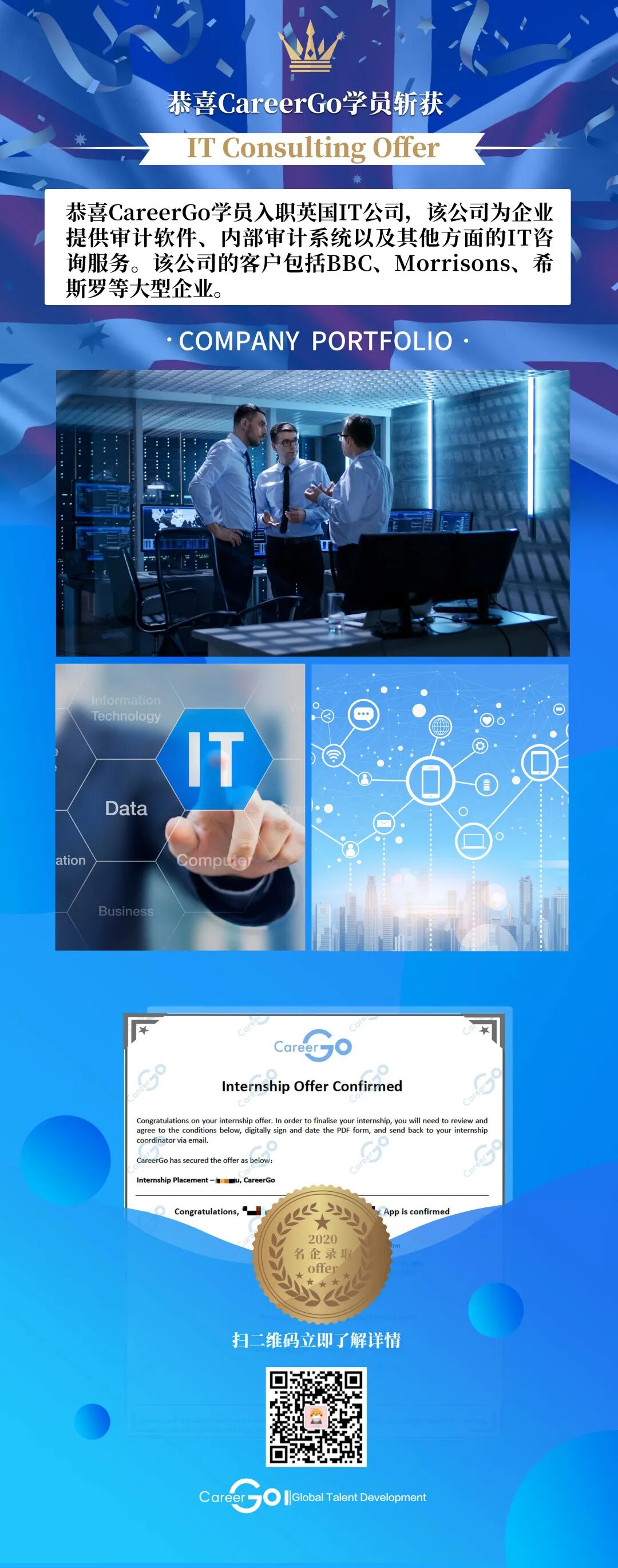 ■ 任职于英国跨国商业发展咨询公司,负责英美留学生职业规划以及能力提升