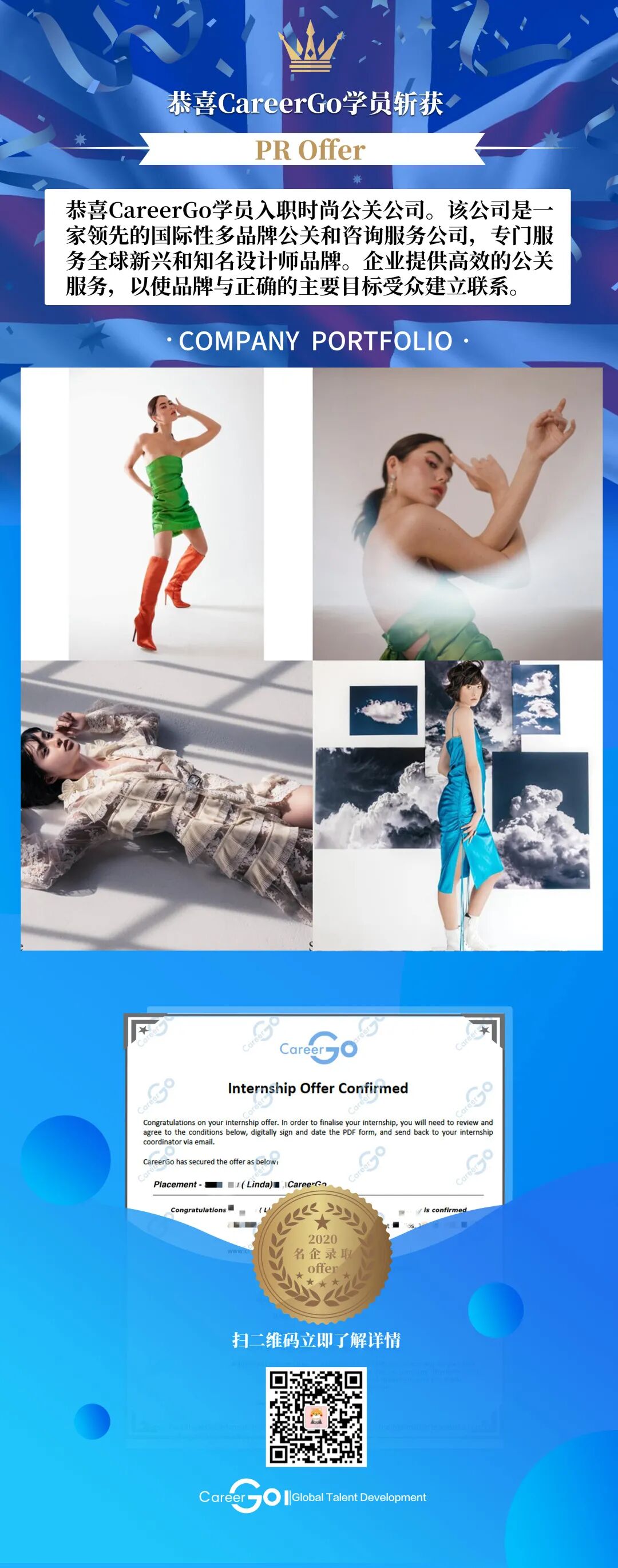 ■ 在职业发展领域有丰富经验,其学生拿到过包括四大、咨询、投行、建筑、奢侈品、艺术、医疗、互联网等知名企业全职岗位。