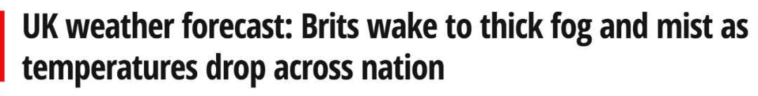 英国再次经历大雾天气,低能见度和低温。如果一大早要出门,建议提前计划行程,因为雾会缩小道路上的视线范围。天气寒冷,请大家做好防寒!