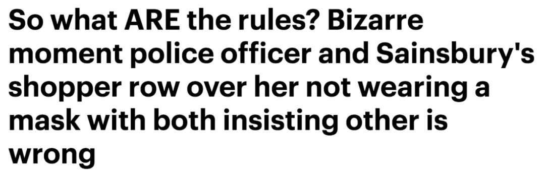 (新闻源:https://www.dailymail.co.uk/news/article-8921187/Coronavirus-UK-Police-Sainsburys-shopper-row-not-wearing-mask.html)