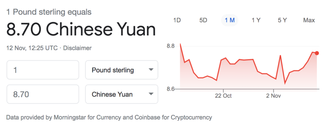 今日英镑兑人民币汇率:1:8.70
