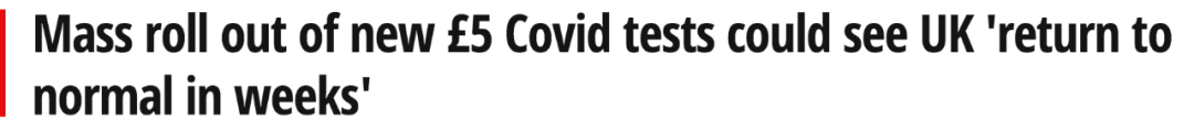 新的5英镑Covid测试大规模推出,意味着英国“在几周内恢复正常”