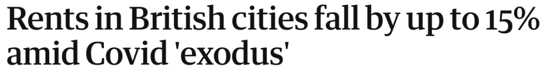 收藏今天The Guardian发出了这样的一则新闻,数据显示,英国大部分城市的私人公寓租金在过去一年中下降了15%,主要原因是因为租客离开城区,搬往郊区或乡村开始新生活。