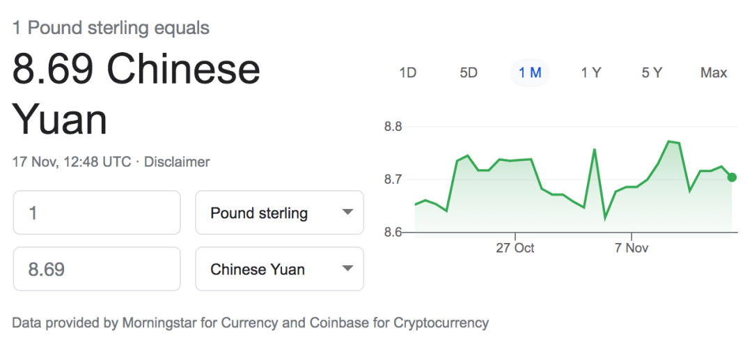 今日英镑兑人民币汇率:1:8.69