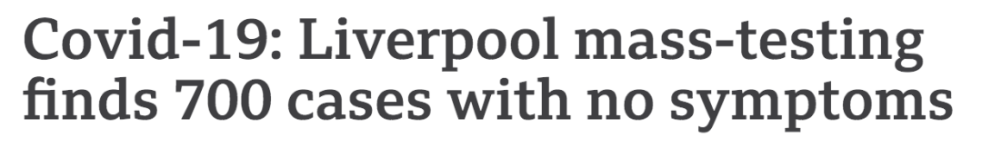 在利物浦进行的大规模Covid-19检测中,有近10万人接受了检测,试验发现700人无症状感染者。如果没有这样的大规模检测,就不会发现这些阳性病例。