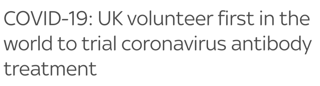 (新闻源:https://news.sky.com/story/covid-19-uk-volunteer-first-in-the-world-to-trial-coronavirus-antibody-treatment-12137777)