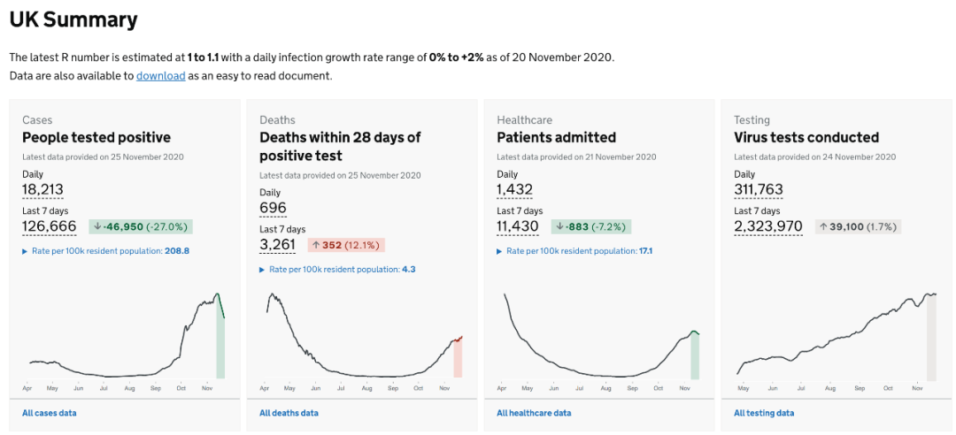 11月26日 英国各地累计确诊人数(2日对比新增人数)