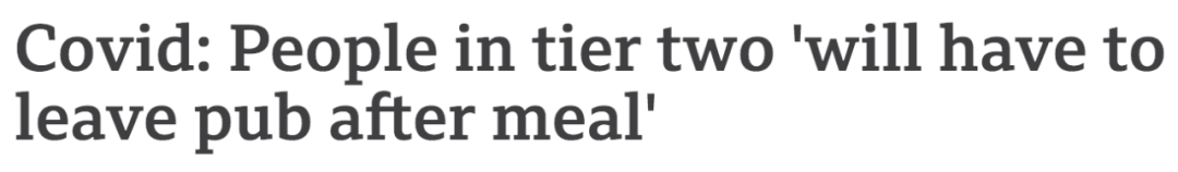 在12月2日封城后的指导下,高风险地区的酒吧只能作为餐厅的情况下才能营业。而且酒只能作为“餐食”的一部分。除了外卖外,英国各地的酒吧和餐馆目前都已关闭。