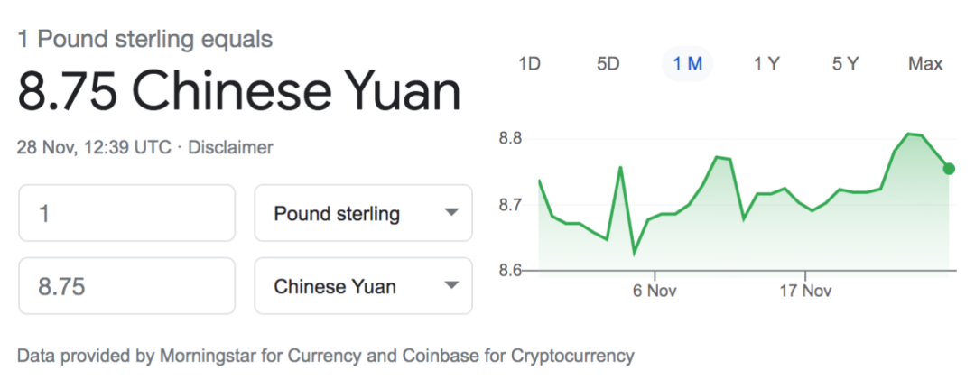 今日英镑兑人民币汇率:1:8.75