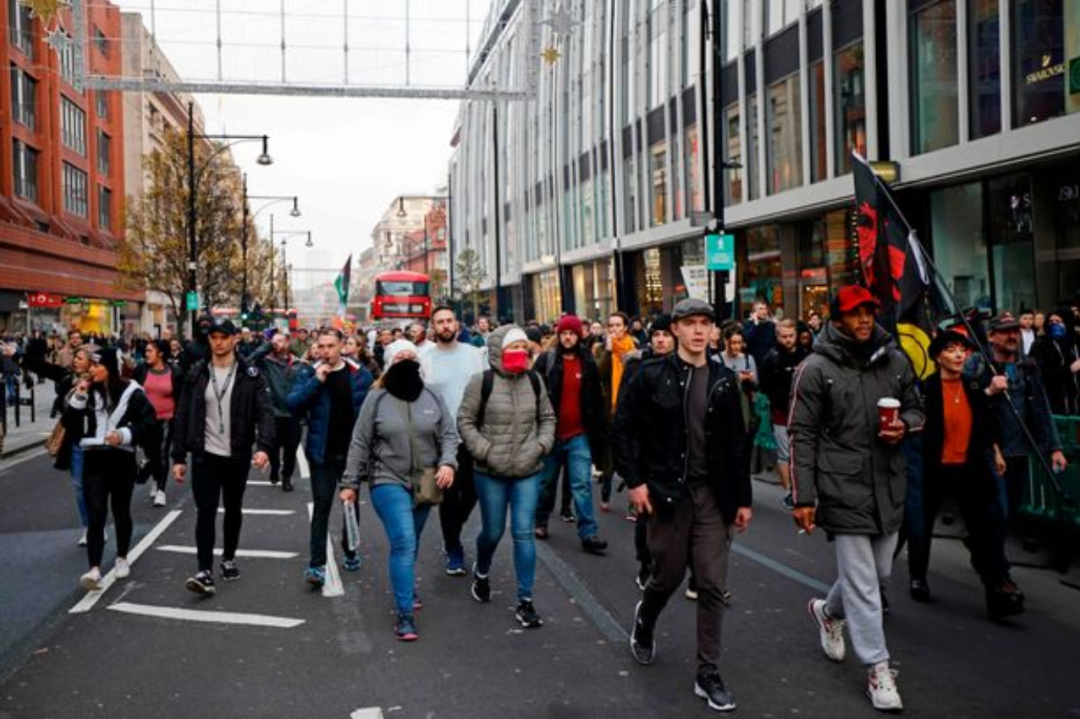 在伦敦市中心举行的抗议封锁活动中,示威者再次与警方发生冲突,155名反对封锁的抗议者被捕。