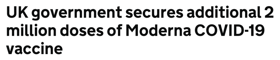 (新闻源:https://www.gov.uk/government/news/uk-government-secures-additional-2-million-doses-of-moderna-covid-19-vaccine)