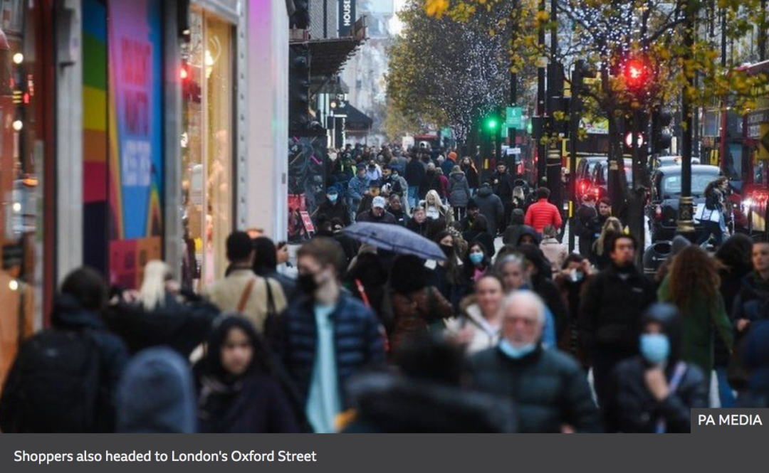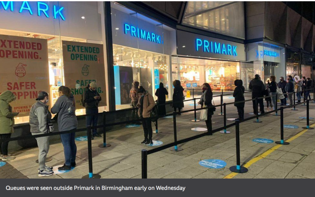 英国执行最新疫情管制等级制度,购物人流再次重返,早上7点就开始排队购物