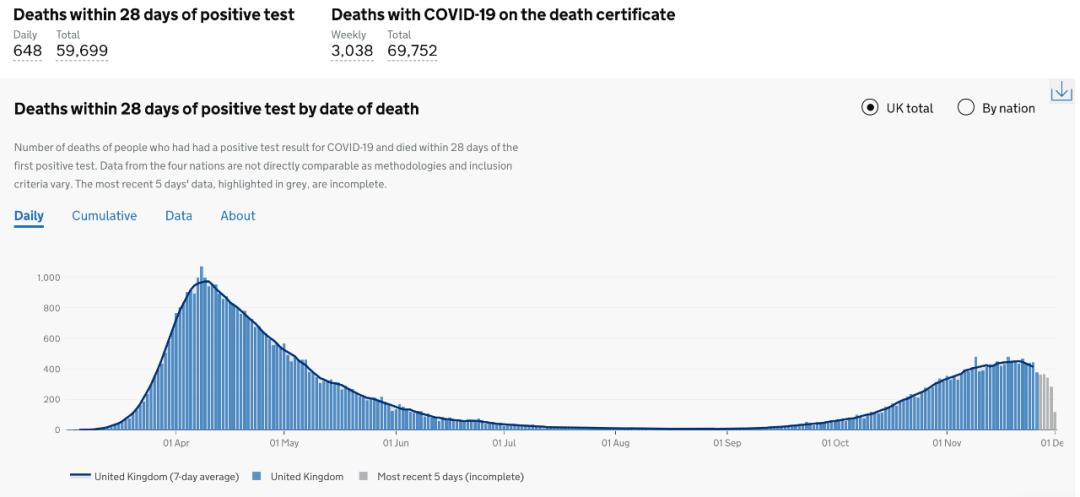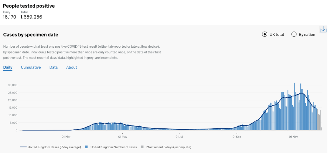 12月3日 英国各地累计确诊人数(2日对比新增人数)
