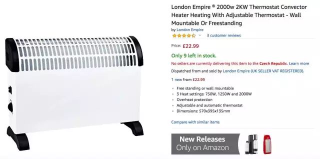 如果你真的觉得很冷可以自备取暖设备,如果你住的公寓或者house暖气设备不够给力,还有一个终极解决方案,那就是——自己买一些补充的保暖设备咯!英国市面上可以买到的取暖设备有比较便宜的暖风机、耐用的暖风扇和各种发热源的电暖器。下面这个是君君自己平时使用的一个推荐。
