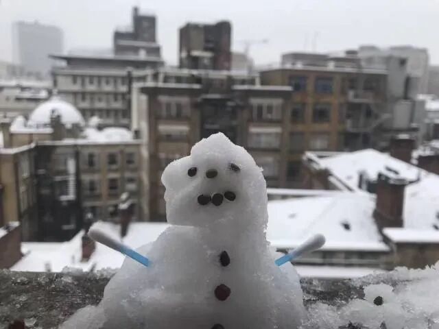去年的伦敦下雪,可美了,看看君君自己做得⛄️ 雪人