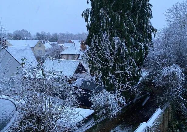 /雪覆盖了@北埃塞克斯海丁汉姆城堡的屋顶 ❄️ from: CEm Williams