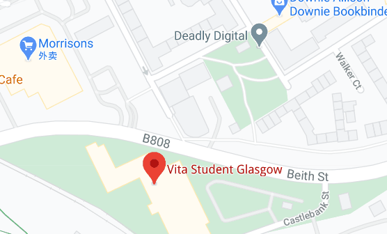 公寓内有健身房、洗衣房、自习室等,门口有coop超市和costa,距学校(预科楼&音乐学院)2分钟路程,附近中西餐馆、酒吧都有,距市中心10分钟