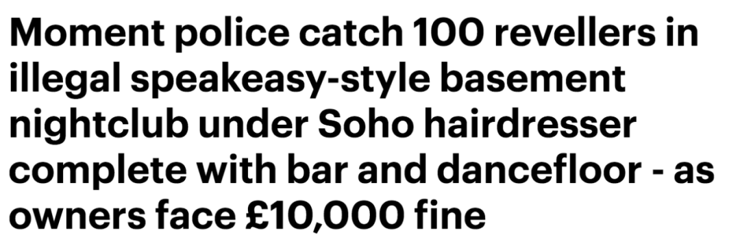 警察在Soho的一家美发店地下室发现了非法地下夜总会逮捕了100名狂欢者,老板将面临1万英镑的罚款
