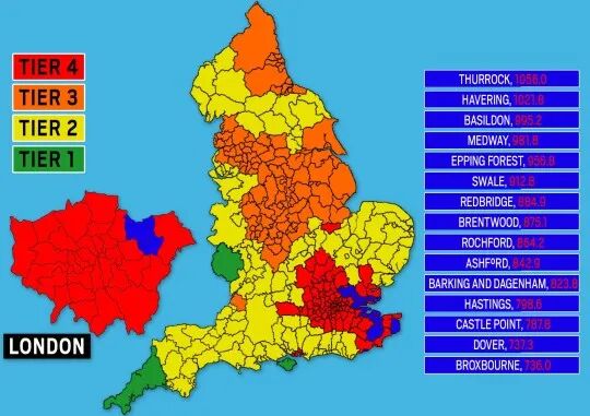 (新闻源:https://metro.co.uk/2020/12/21/worst-hit-covid-hotspots-revealed-amid-new-fast-spreading-strain-13783282/)