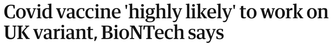 (新闻源:https://www.theguardian.com/world/2020/dec/22/covid-vaccine-likely-to-work-on-uk-variant-biontech-boss-says)