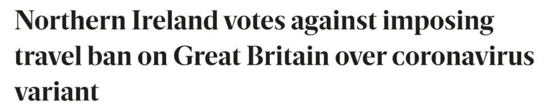 (新闻源:https://www.standard.co.uk/news/uk/northern-ireland-votes-against-imposing-travel-ban-on-great-britain-b431266.html)