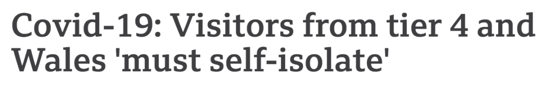 来自Tier 4区域 和Wales的访客,前往英国其他区域必须自我隔离10天