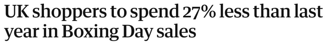 (新闻源:https://www.theguardian.com/business/2020/dec/26/uk-shoppers-to-spend-27-less-than-last-year-in-boxing-day-sales)