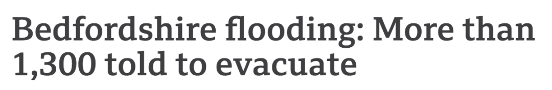 贝德福德郡发洪水,超过1300人被告知撤离