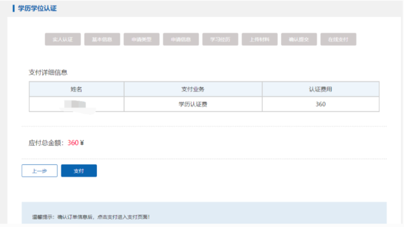 需支付【学历认证费用】