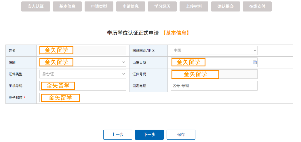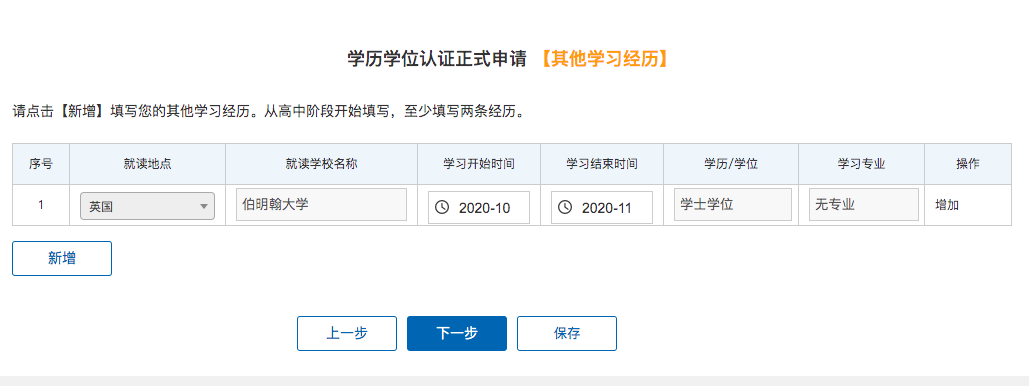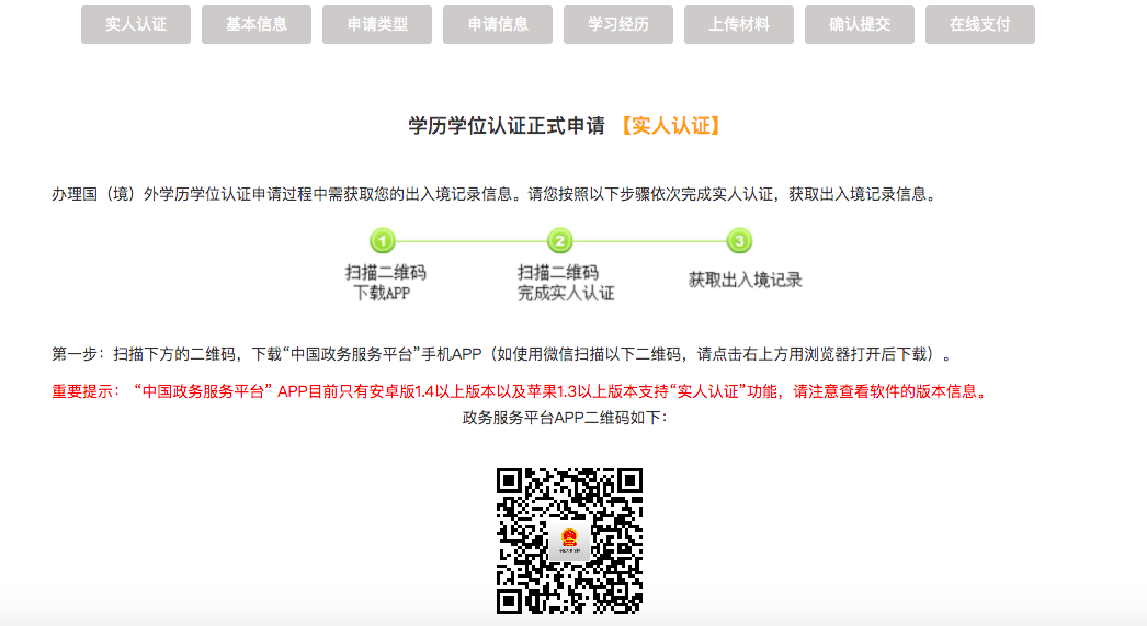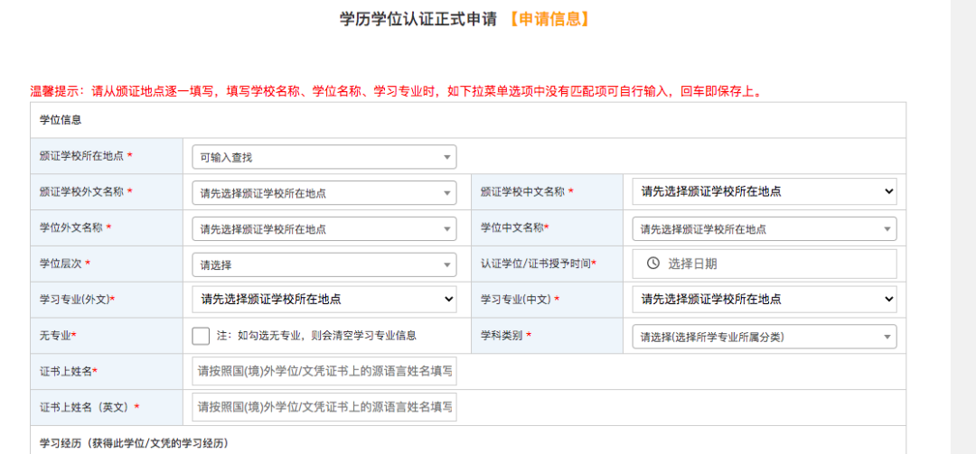 进入学历学位认证正式申请页面