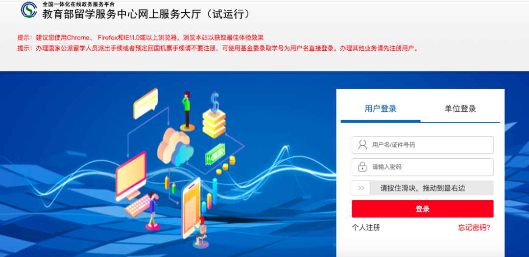 认证网址:http://zwfw.cscse.edu.cn/